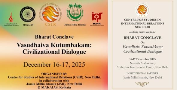 Centre for Studies in International Relations (CSIR) is a Research Centre / Institute that focuses on Indian cultural and civilizational linkages with the world. It strives to address global challenges with the vision of a new India and intends to do so by drawing on philosophical insights, historical experience, and the rich heritage of India.