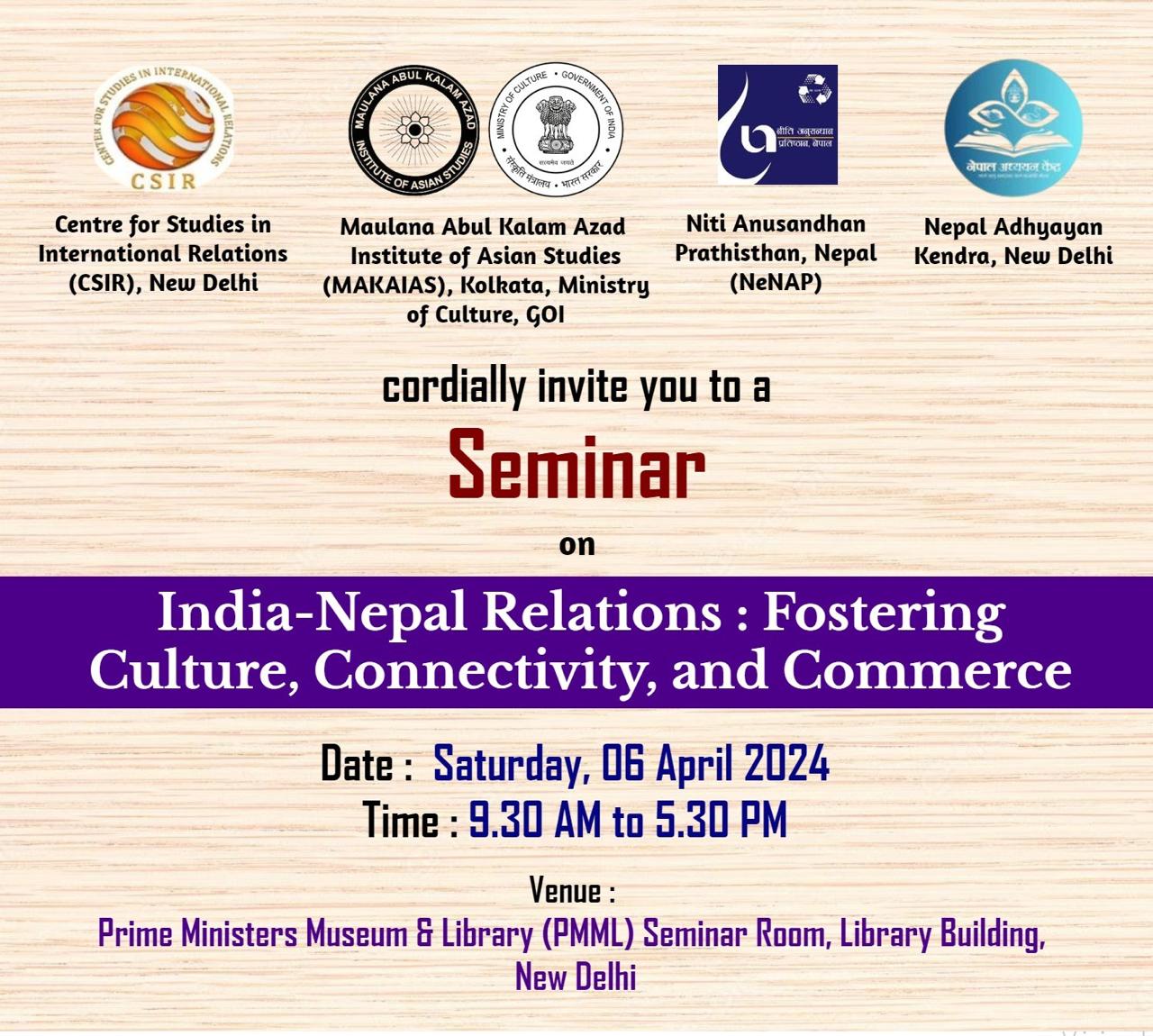 Intenational Seminar on India-Nepal Relations: Fostering Culture, Connectivity & Commerce
